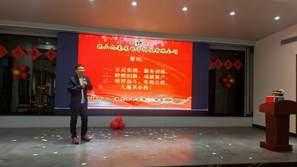 昆山九毫米總經理,各部門負責人,特邀領導、嘉賓及百余名九毫米家人齊聚一堂,