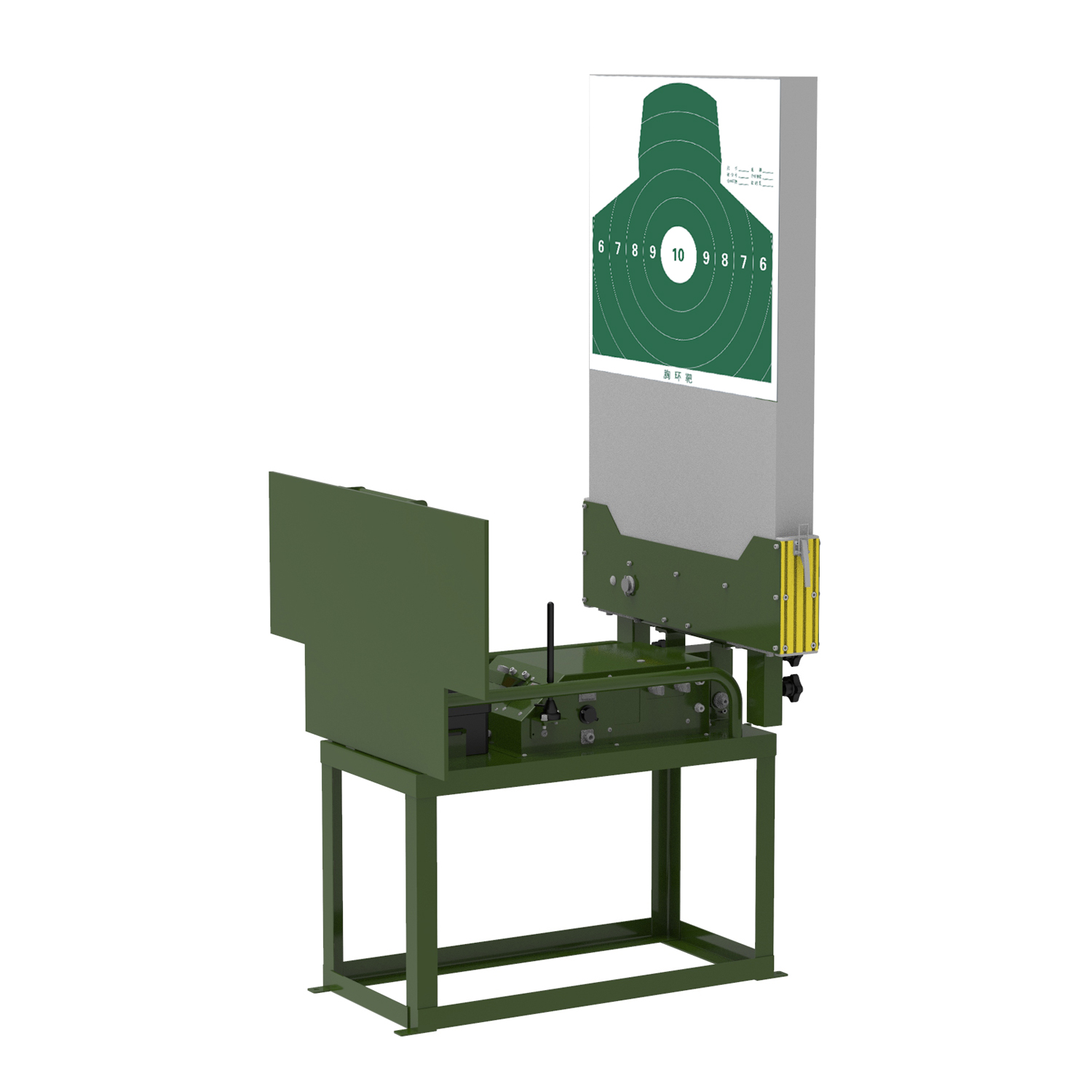 封閉式起倒激波報靶機,配置專用靶腔,92式手槍可報靶,主要由封閉式激波報靶器、防彈板、起倒靶、高底座構成。
